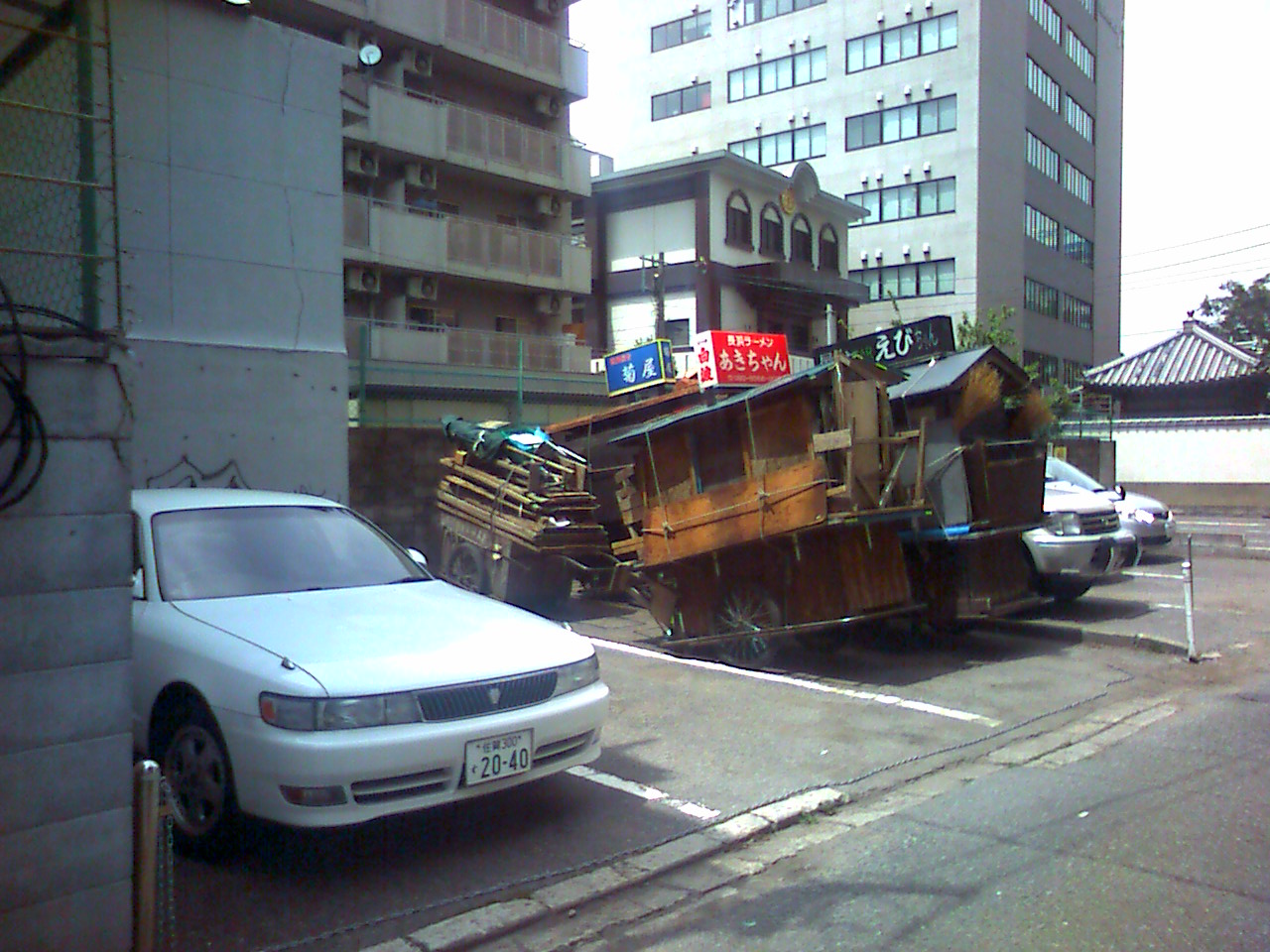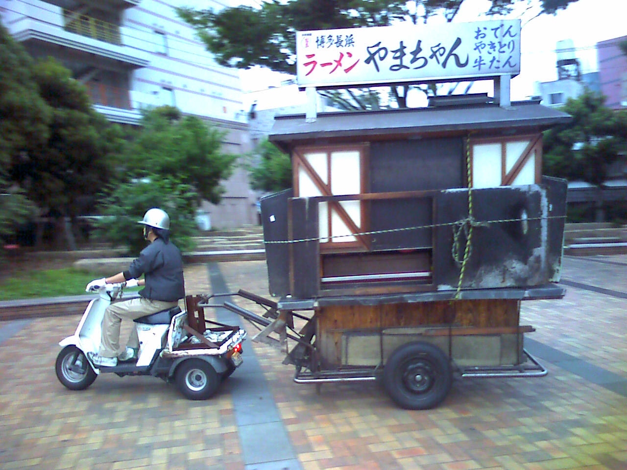福岡では、屋台は月極駐車場に停めてあったりするのです。